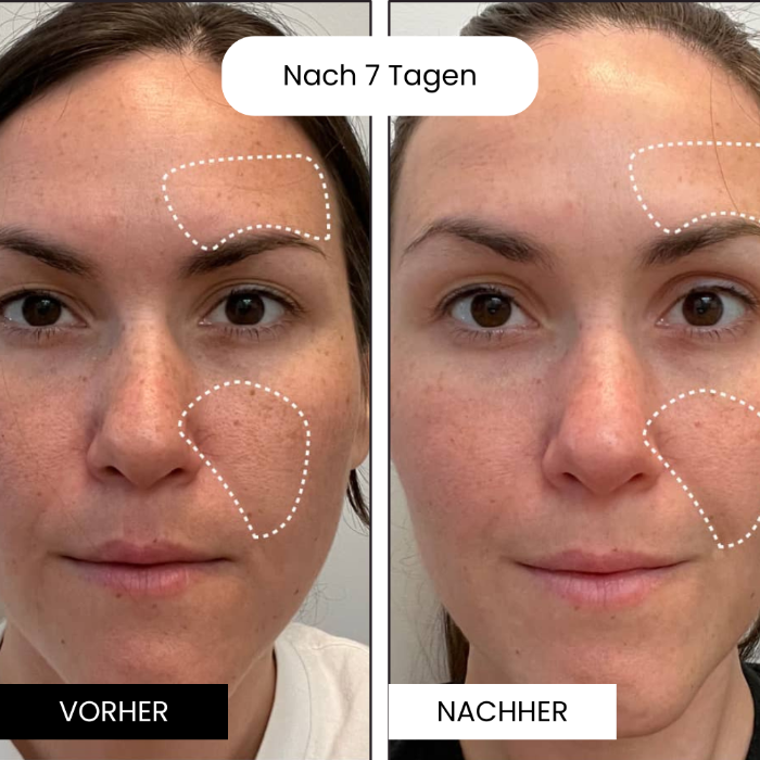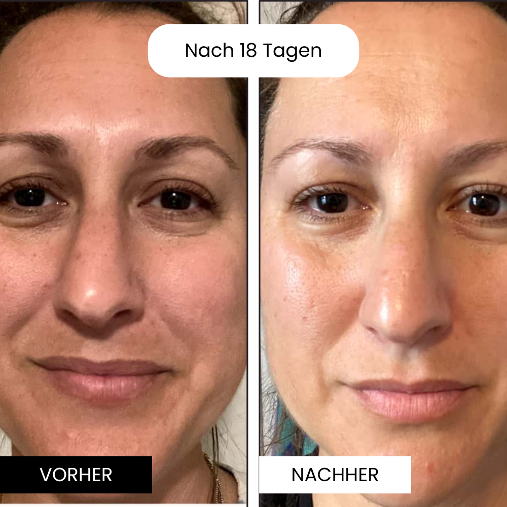 Wir versichern dir sichtbare Verbesserungen der Haut nach ca. 3 Wochen, aber viele Kunden berichten bereits nach den ersten Anwendungen von weicherer und strahlenderer Haut.